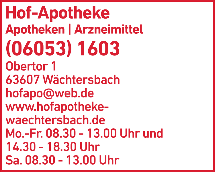 Hof-Apotheke 06053 16 03 Wächtersbach Obertor 1 63607 5 5 2