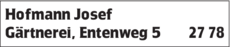 Hofmann Josef bietet Gärtnerei und Garten- und Landschaftsbau an.