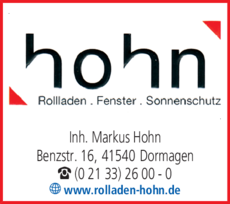 Die Adresse von Hohn Rollladen lautet: Benzstr. 16, 41540 Dormagen
