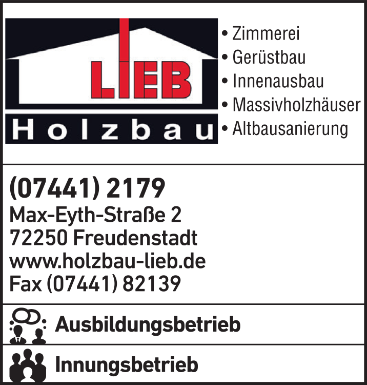 Die Adresse von Holzbau Lieb lautet: May-Eyth-Str. 2, 72250 Freudenstadt