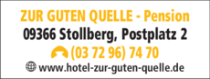 Die Adresse von Hotel Zur guten Quelle lautet: Postplatz 2, 09366 Stollberg