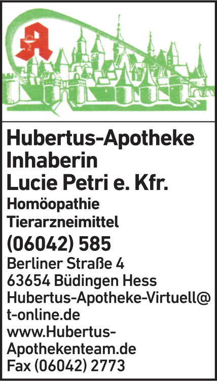 Hubertus-Apotheke Inh. Lucie Petri 06042 5 85 Büdingen Berliner Str. 4 63654 de.teleauskunft.oetb.webapp2.detail.Graphic@49aa115f