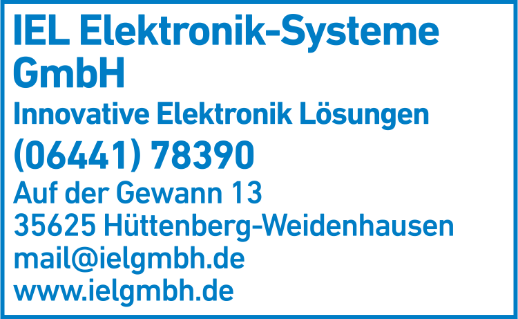 Die Adresse von IEL Elektronik-Systeme GmbH lautet: Auf der Gewann 13, 35625 Hüttenberg