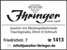 Wie lautet die Adresse von Ihringer - Goldschmiede u. Trauringstudio?