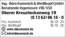 Ing.-Büro Kummich & Weißkopf GmbH 07362 96 18-0 Bopfingen Oberer Kreuzheckenweg 19 73441