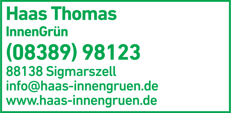 Die Adresse von InnenGrün lautet: Oeschweg 3, 88138 Sigmarszell