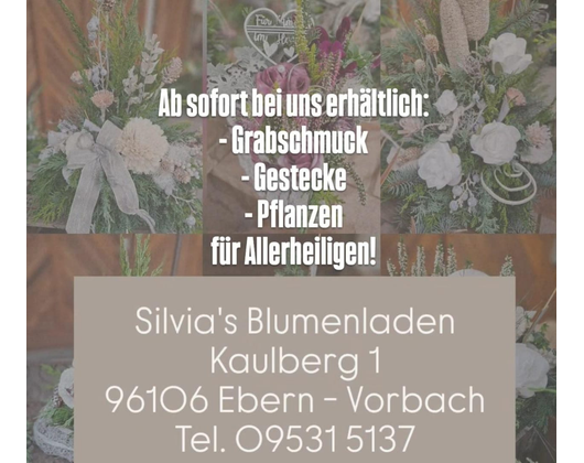 Die Adresse von Jäger Silvia Blumenladen lautet: Kaulberg 1, 96106 Ebern-Vorbach