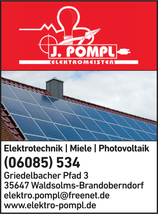 Die Adresse von Jörg Pompl Elektrotechnik lautet: Griedelbacher Pfad 3, 35647 Waldsolms