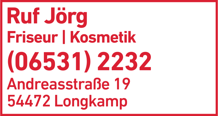 Jörg Ruf Salon Ruf-Frisör 06531 22 32 Longkamp Andreasstr. 19 54472