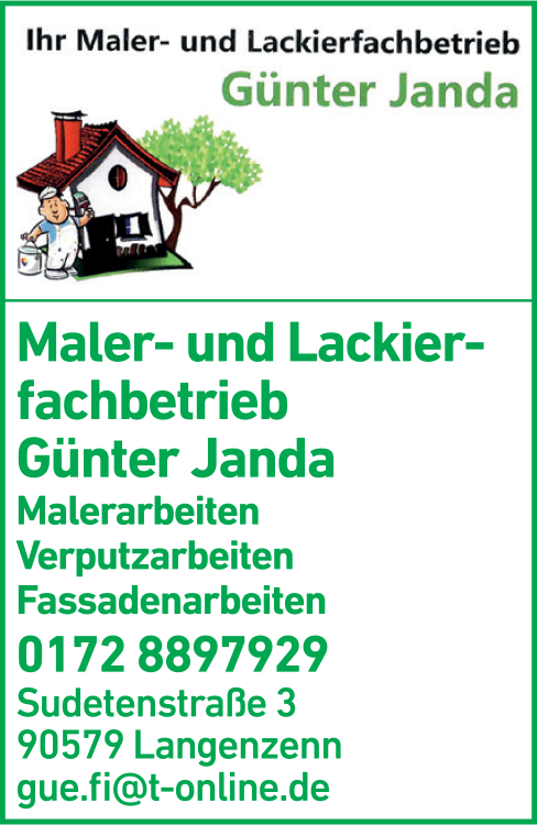 Janda Günter Maler- und Lackierfachbetrieb 0172 8 89 79 29 Langenzenn Sudetenstr. 3 90579