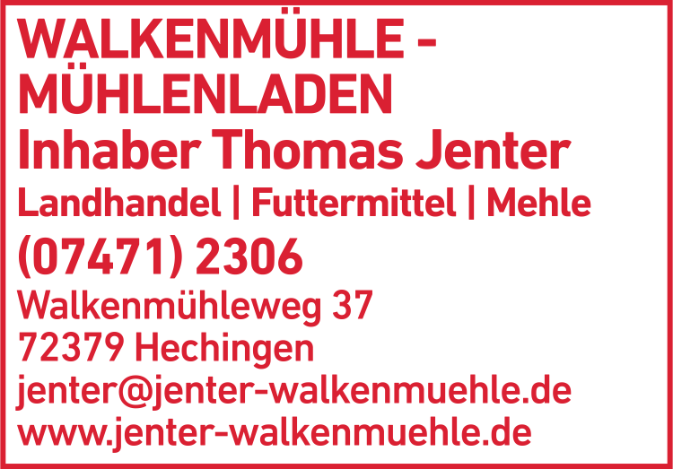 Die Adresse von Jenter Walkenmühle GmbH lautet: Walkenmühleweg 37, 72379 Hechingen