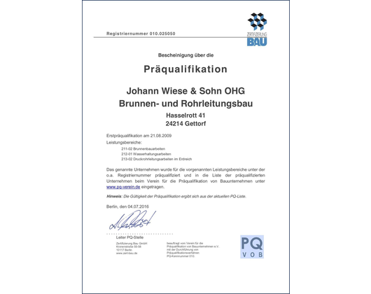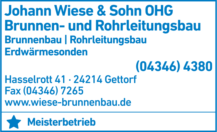 Die Adresse von Johann Wiese & Sohn OHG lautet: Hasselrott 41, 24214 Gettorf