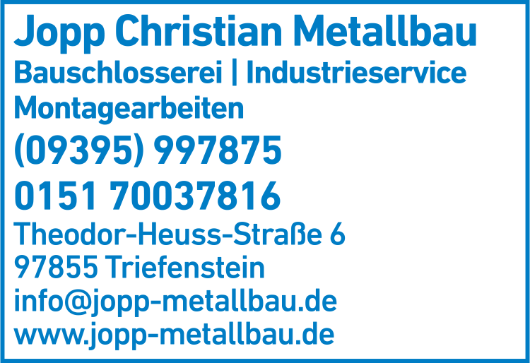 Die Adresse von Jopp Christian lautet: Theodor-Heuss-Str. 6, 97855 Triefenstein