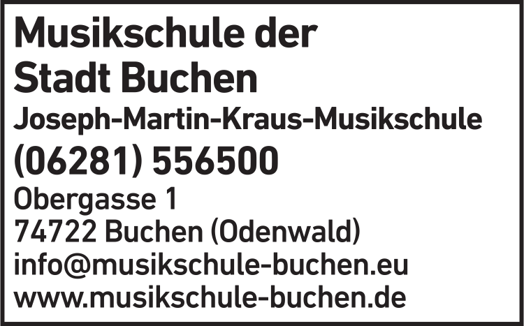 Die Adresse von Joseph-Martin-Kraus-Musikschule lautet: Obergasse 1, 74722 Buchen