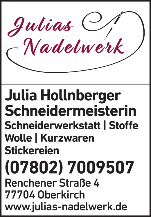 Die Adresse von Julias Nadelwerk Mode aus Meisterhand lautet: Renchener Str. 4, 77704 Oberkirch