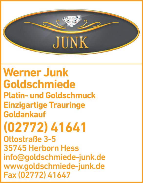 Die Adresse von Junk Werner Goldschmiede lautet: Ottostr. 3-5, 35745 Herborn