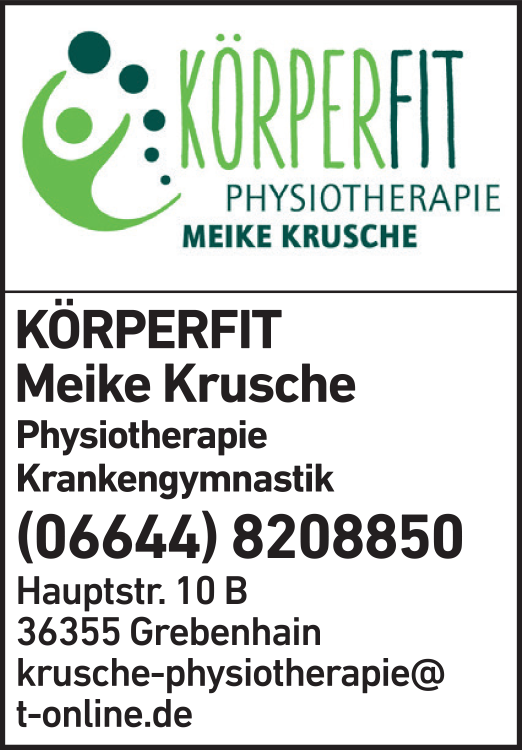 KÖRPERFIT Meike Krusche 06644 8 20 88 50 Grebenhain Hauptstr. 10 B 36355 de.teleauskunft.oetb.webapp2.detail.Graphic@33ea48b2 3 5 2
