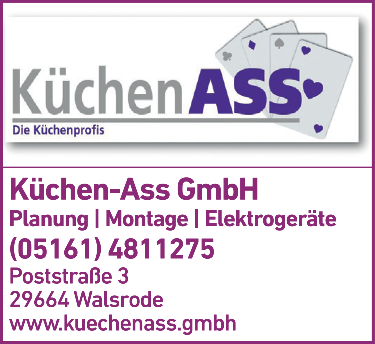 Die Adresse von Küchen-Ass GmbH lautet: Poststr. 3, 29664 Walsrode