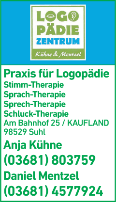Die Adresse von Kühne Anja Praxis für Logopädie lautet: Am Bahnhof 25, 98527 Suhl