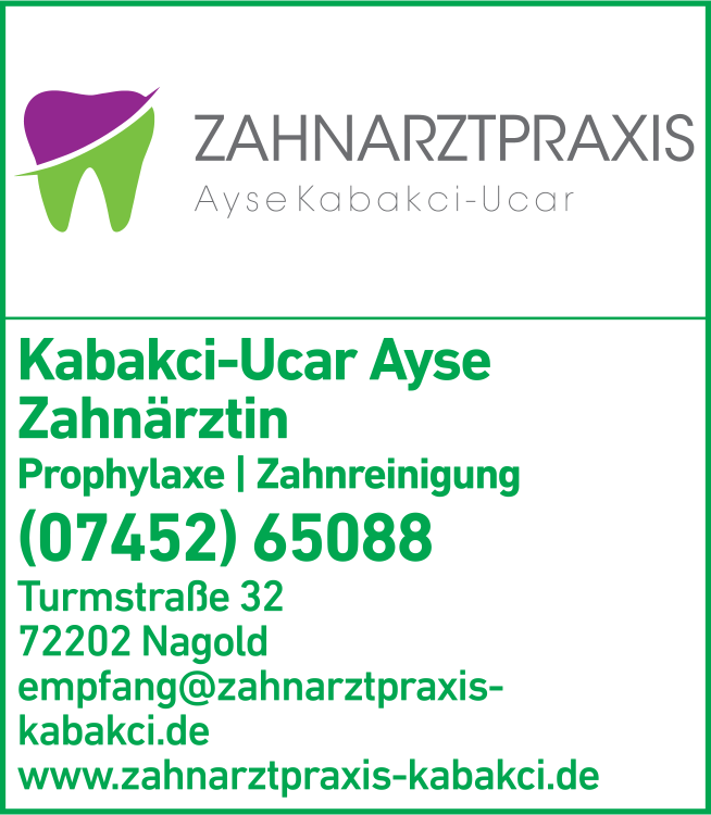 Kabakci-Ucar Ayse Zahnärztin 07452 6 50 88 Nagold Turmstr. 32 72202