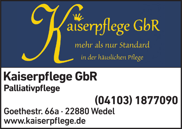 Die Adresse von Kaiserpflege GbR lautet: Goethestr. 66 a, 22880 Wedel