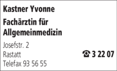 Die Adresse von Kastner Yvonne lautet: Josefstr. 2, 76437 Rastatt