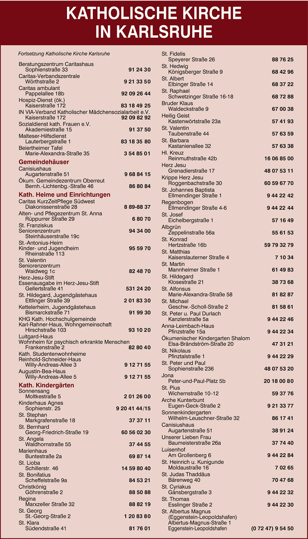 Katholische Kirche Seite 2 0721 9 12 71-0 Karlsruhe Bannwaldallee 60 76185 Grünwinkel