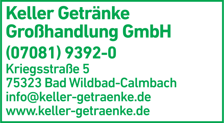 Die Adresse von Keller Getränkegroßhandlung GmbH lautet: Kriegsstr. 5, 75323 Bad Wildbad