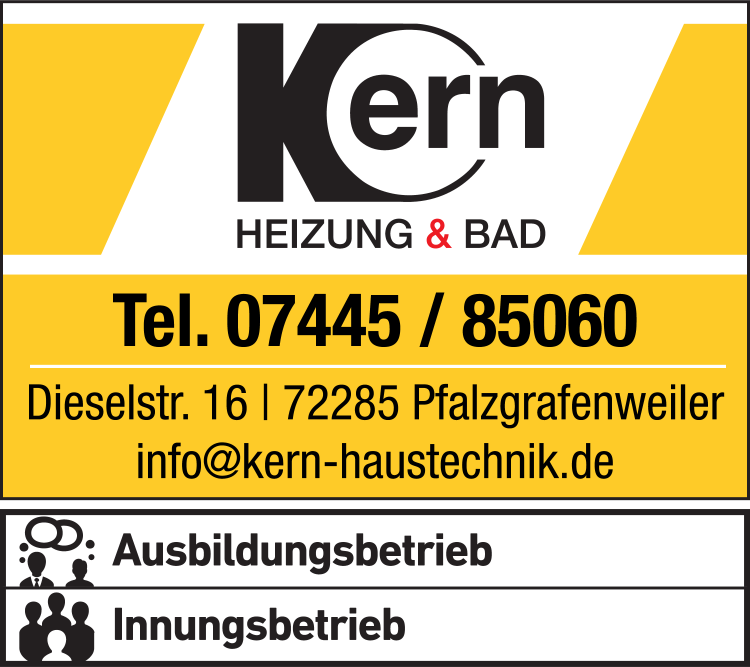Die Adresse von Kern Haustechnik GmbH & Co. lautet: Dieselstr. 16, 72285 Pfalzgrafenweiler