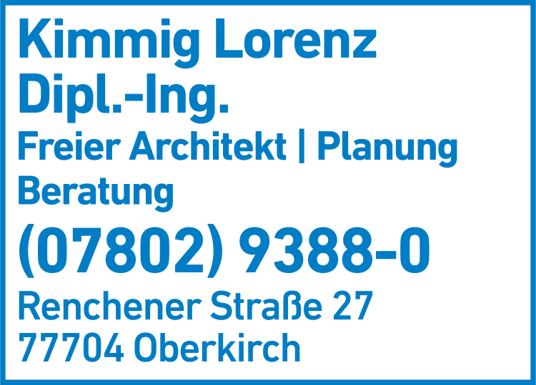 Die Adresse von Kimmig Lorenz Dipl. - Ing. Freier Architekt lautet: Renchener Str. 27, 77704 Oberkirch