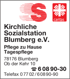 Kirchliche Sozialstation Blumberg e.V. bietet Pflegedienste an.