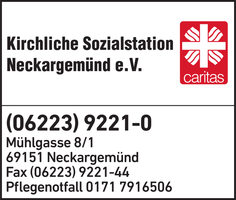 Kirchliche Sozialstation Neckargemünd e.V. 06223 92 21-0 Neckargemünd Mühlgasse 8/1 69151