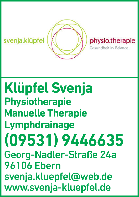 Klüpfel Physiotherapie 09531 9 44 66 35 Ebern Georg-Nadler-Str. 24 a 96106