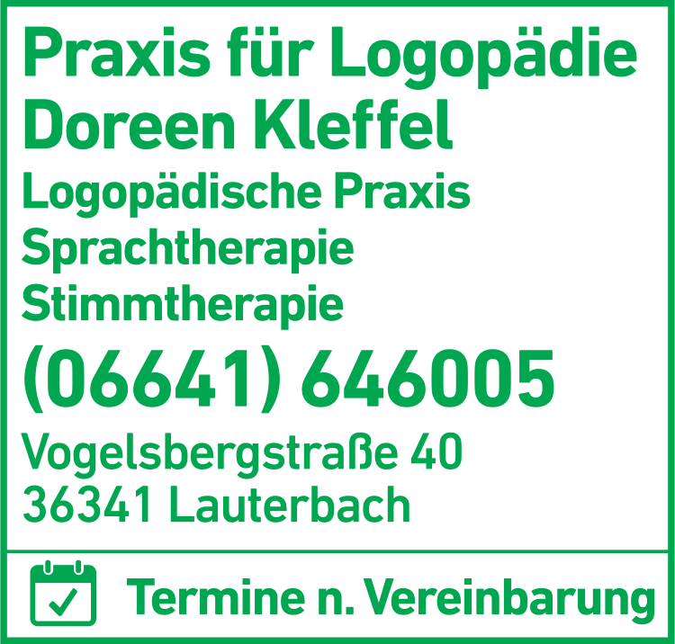 Kleffel Doreen Praxis für Logopädie 06641 64 60 05 Lauterbach (Hessen) Vogelsbergstr. 40 36341