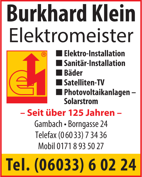 Klein Burkhard Elektro Sanitär Bäder 06033 6 02 24 Münzenberg Borngasse 24 35516 Gambach