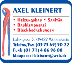 Die Adresse von Kleinert Axel lautet: Lohngasse 5, 09429 Wolkenstein