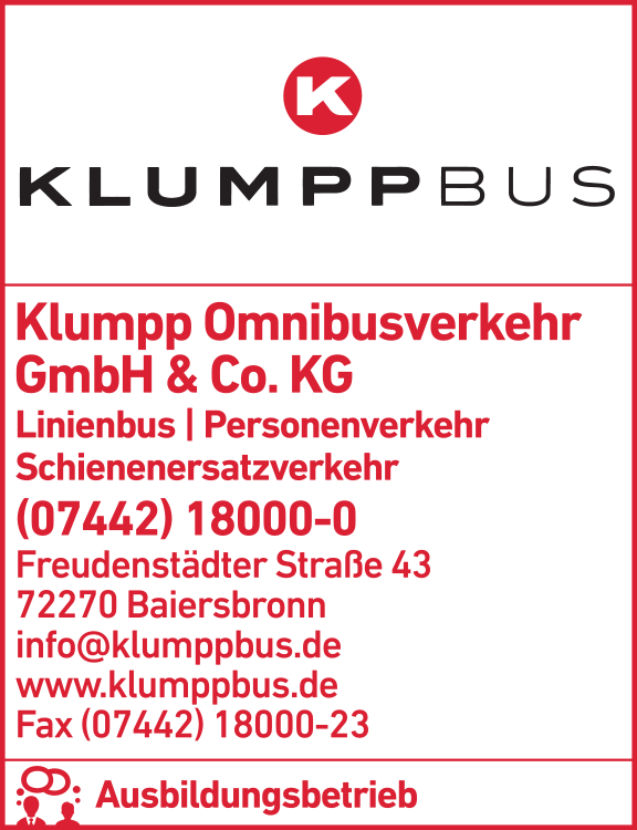 Klumpp GmbH 07442 1 80 00-0 Baiersbronn Freudenstädter Str. 43 72270 1 5 1