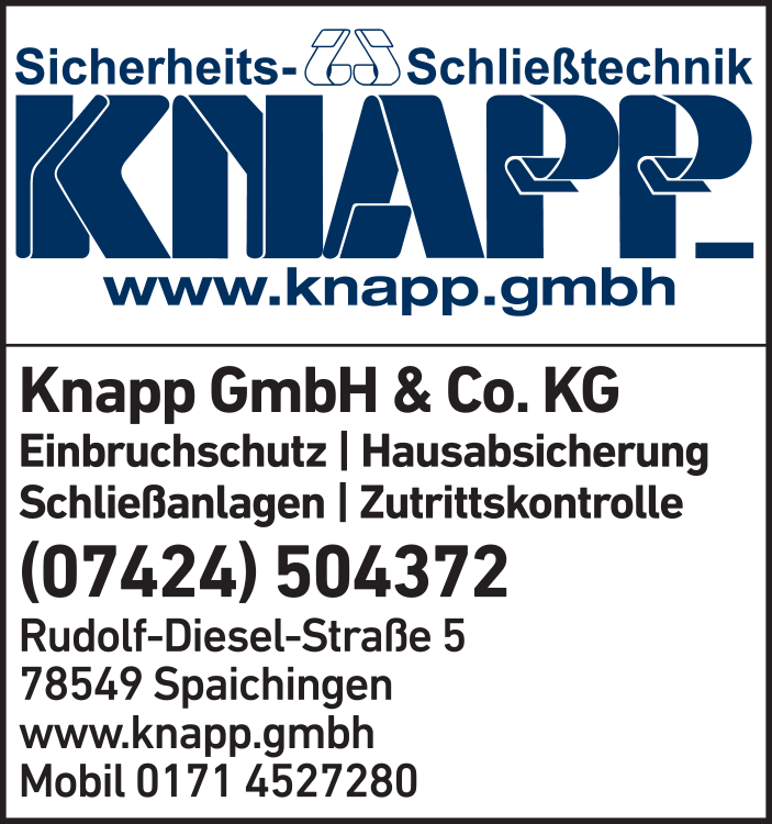 Die Adresse von Knapp GmbH & Co. KG lautet: Rudolf-Diesel-Str. 5, 78549 Spaichingen