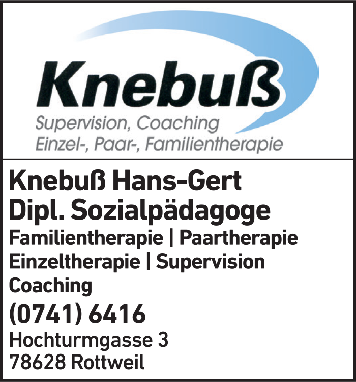 Knebuß Hans-Gert Dipl. - Soz.Päd. Familientherapie 0741 64 16 Rottweil Hochturmgasse 3 78628