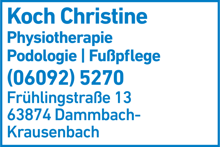 Koch Christine Physiotherapie 06092 52 70 Dammbach Frühlingstr. 13 63874 Krausenbach