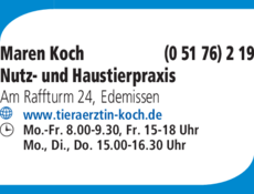 Die Adresse von Koch Maren lautet: Am Raffturm 24, 31234 Edemissen