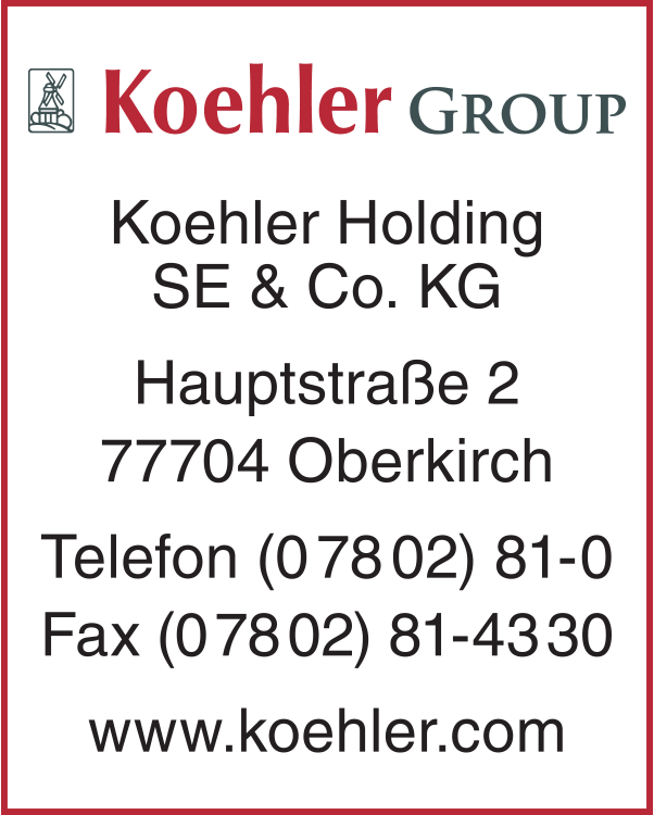 Die Adresse von Koehler Holding SE & Co. KG lautet: Hauptstr. 2, 77704 Oberkirch