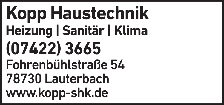Kopp Armin Haustechnik, Heizung-Sanitär 07422 36 65 Lauterbach Fohrenbühlstr. 54 78730
