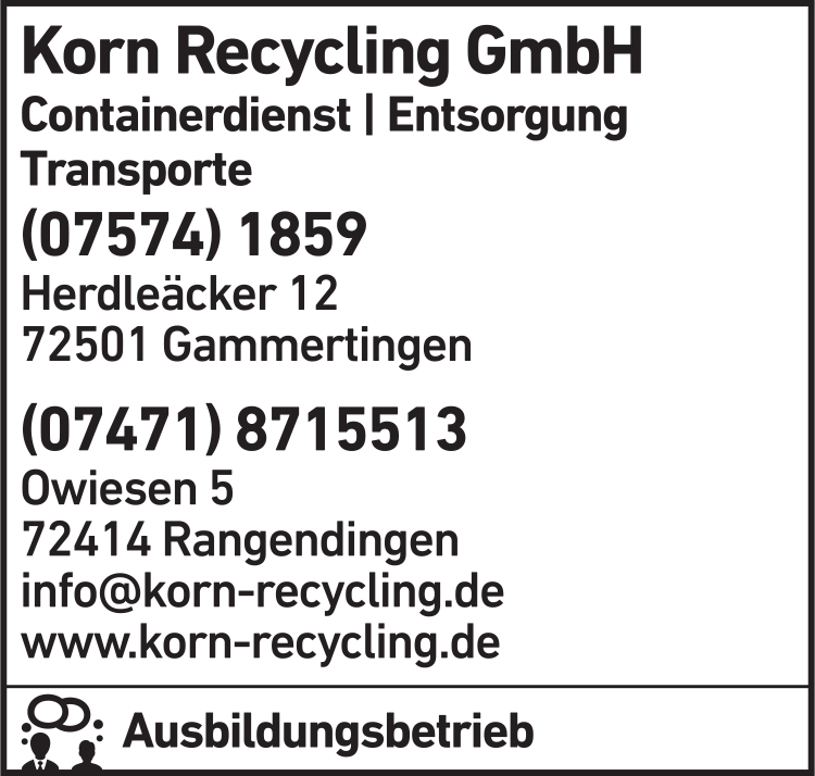 Die Adresse von Korn Recycling GmbH lautet: Owiesen 5, 72414 Rangendingen