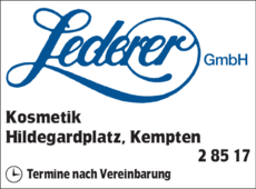 Die Adresse von Kosmetik Lederer GmbH lautet: Hildegardplatz 1, 87435 Kempten
