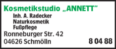 Wie lautet die Adresse von Kosmetikstudio ANNETT?