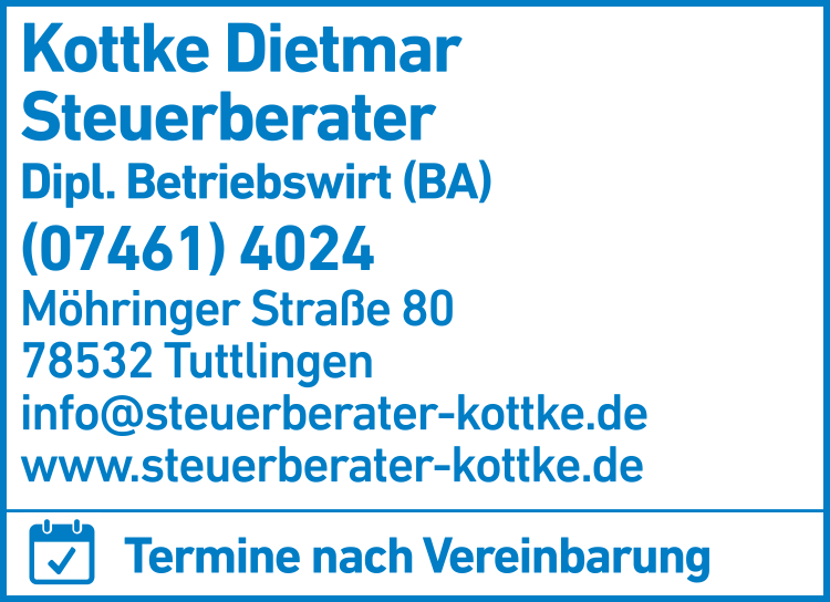 Kottke Dietmar Steuerberater 07461 40 24 Tuttlingen Möhringer Str. 80 78532