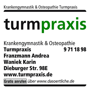 Krankengymnastik & Osteopathie Turmpraxis bietet Massage, Krankengymnastik, Manuelle Therapie, Lymphdrainage, Fussreflexzonenmassage, Physiotherapie, Bobath, Osteopathie, Osteopathiepraxis und Shiatsu an.