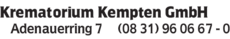 Wie lautet die Adresse von Krematorium Kempten GmbH?