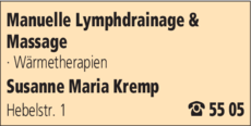 Kremp Susanne Maria, Praxis f. Manuelle Lymphdrainage u. Massage bietet Massagen an.